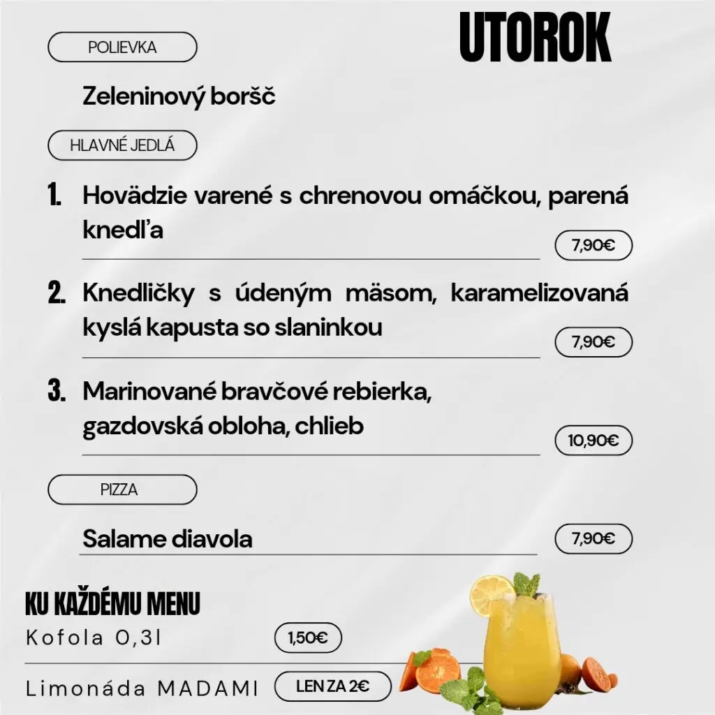 Denné obedové menu (11:00 – 14:00)