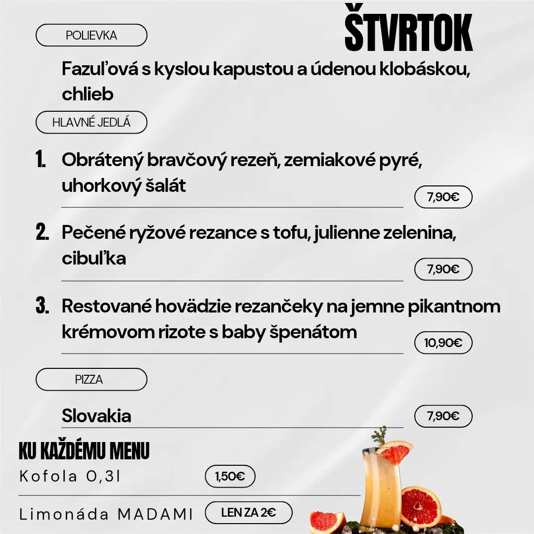 Denné obedové menu (11:00 – 14:00)